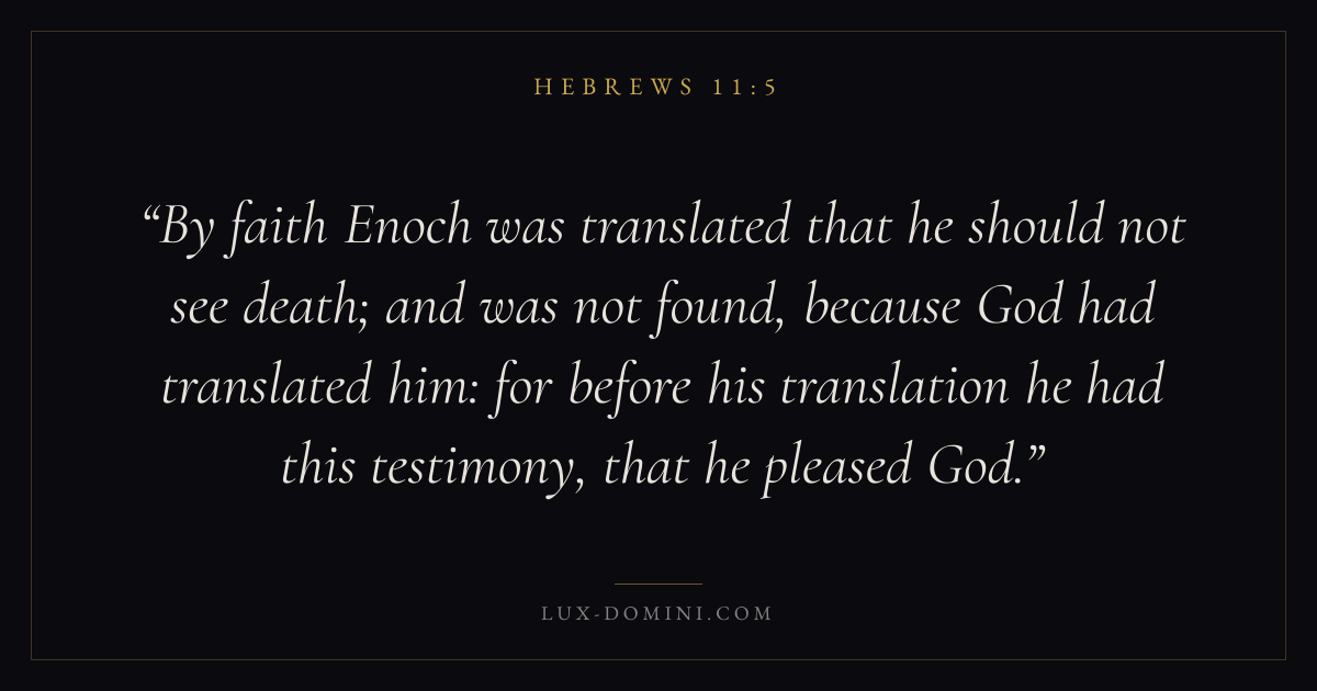 By faith Enoch was translated that he should not see death; and was not found, because God had translated him: for before his translation he had this testimony, that he pleased God.