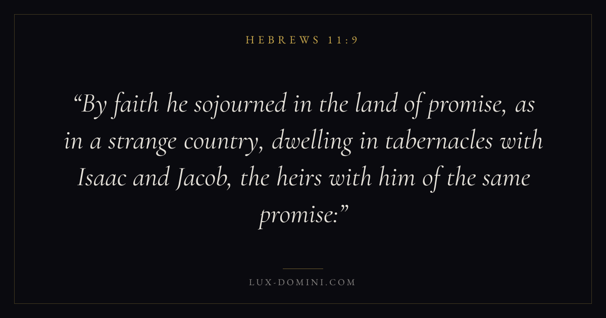 By faith he sojourned in the land of promise, as in a strange country, dwelling in tabernacles with Isaac and Jacob, the heirs with him of the same promise: