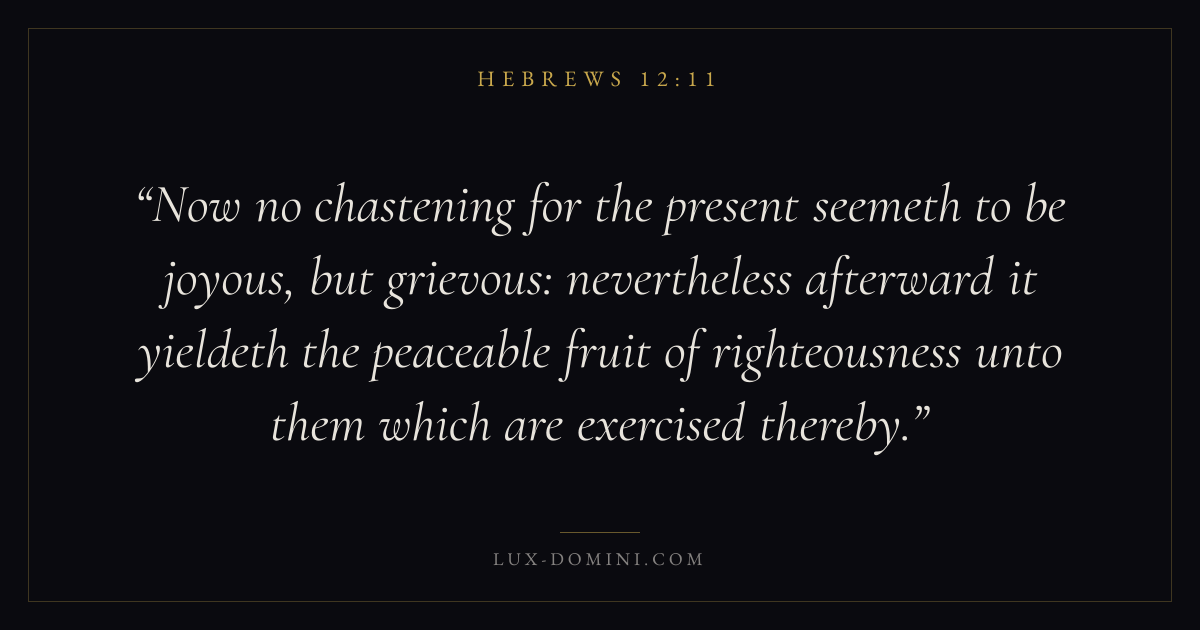 Now no chastening for the present seemeth to be joyous, but grievous: nevertheless afterward it yieldeth the peaceable fruit of righteousness unto them which are exercised thereby.