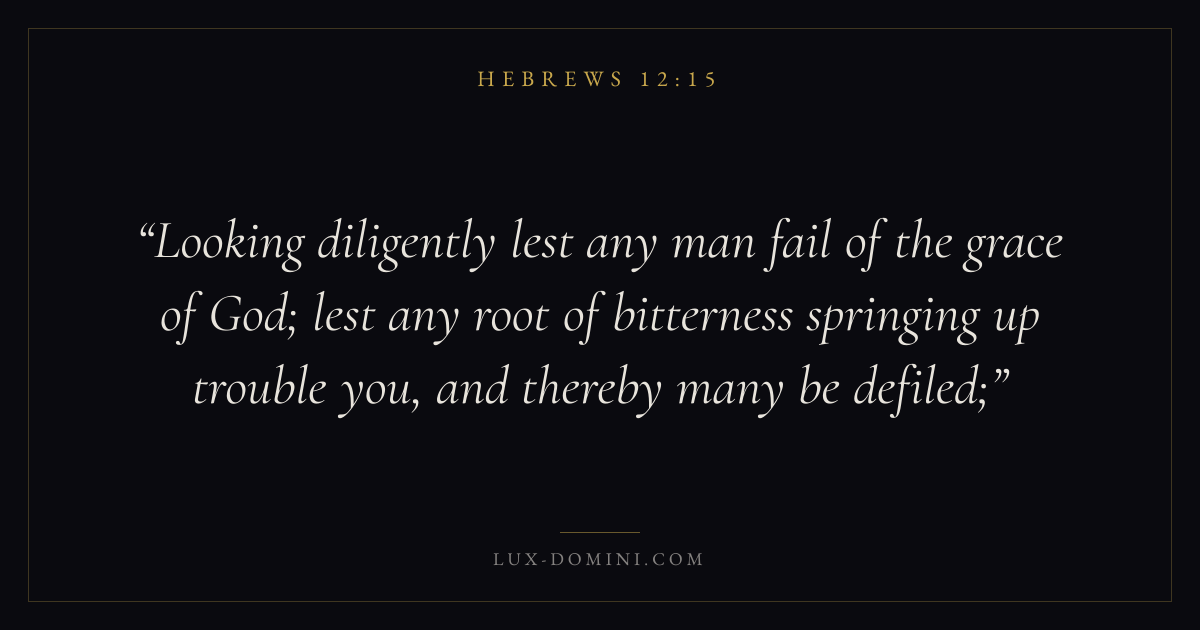 Looking diligently lest any man fail of the grace of God; lest any root of bitterness springing up trouble you, and thereby many be defiled;