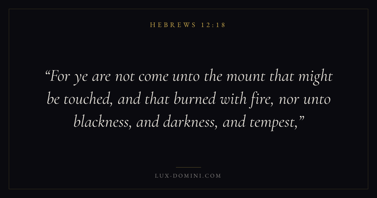 For ye are not come unto the mount that might be touched, and that burned with fire, nor unto blackness, and darkness, and tempest,