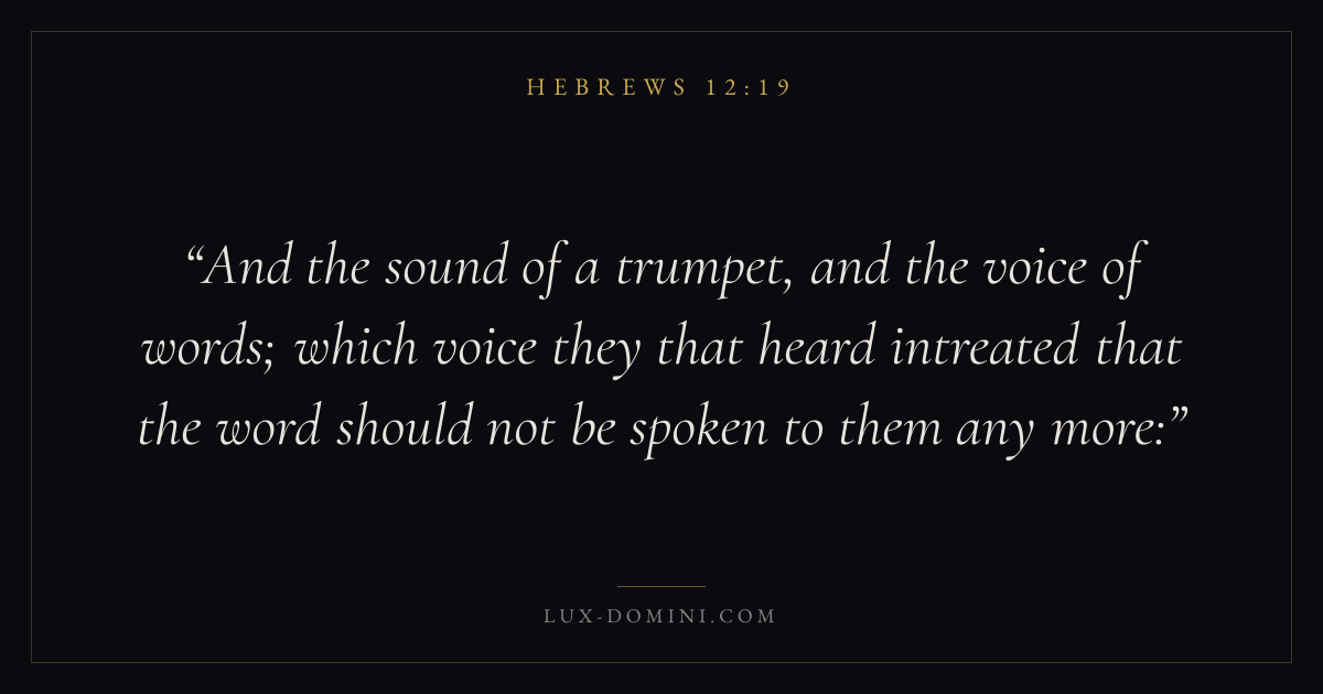 And the sound of a trumpet, and the voice of words; which voice they that heard intreated that the word should not be spoken to them any more: