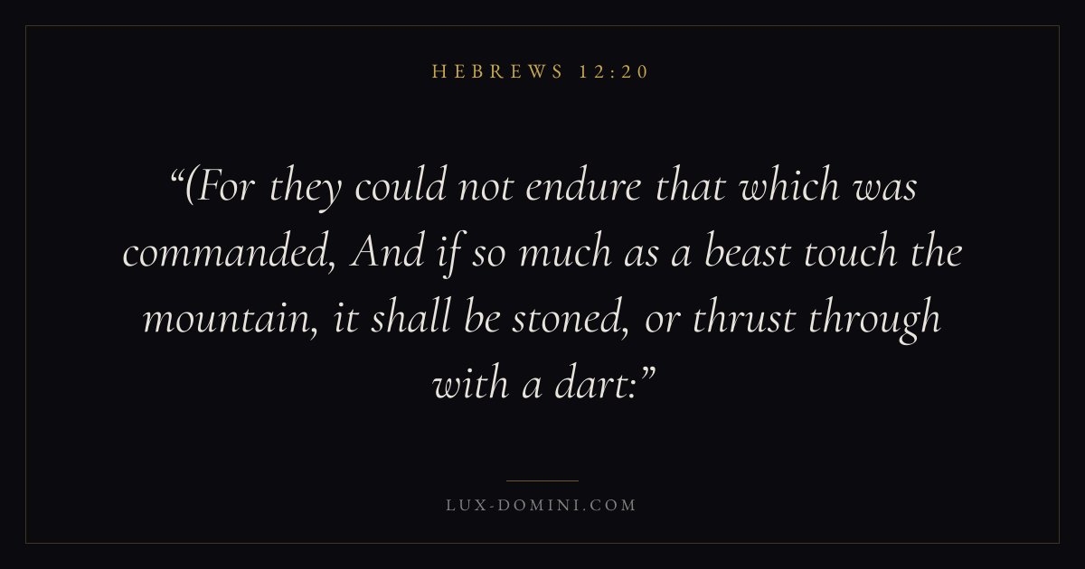 (For they could not endure that which was commanded, And if so much as a beast touch the mountain, it shall be stoned, or thrust through with a dart: