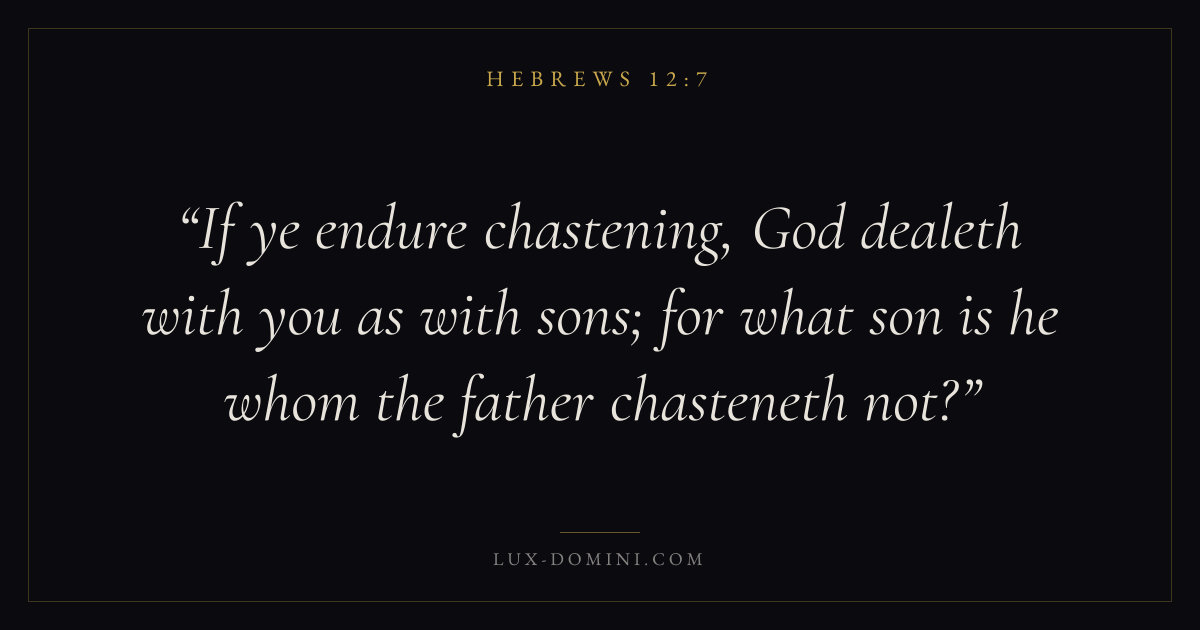 If ye endure chastening, God dealeth with you as with sons; for what son is he whom the father chasteneth not?