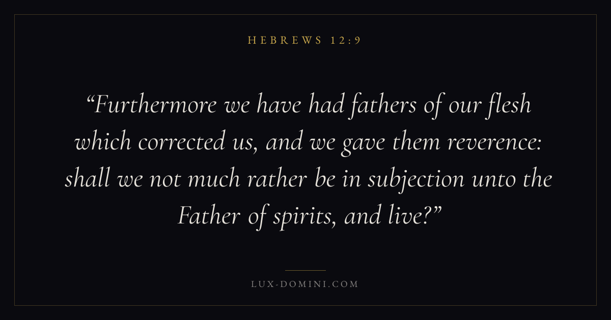 Furthermore we have had fathers of our flesh which corrected us, and we gave them reverence: shall we not much rather be in subjection unto the Father of spirits, and live?