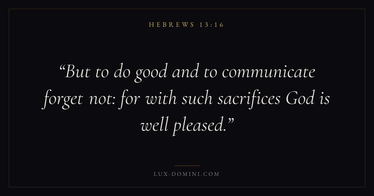 But to do good and to communicate forget not: for with such sacrifices God is well pleased.