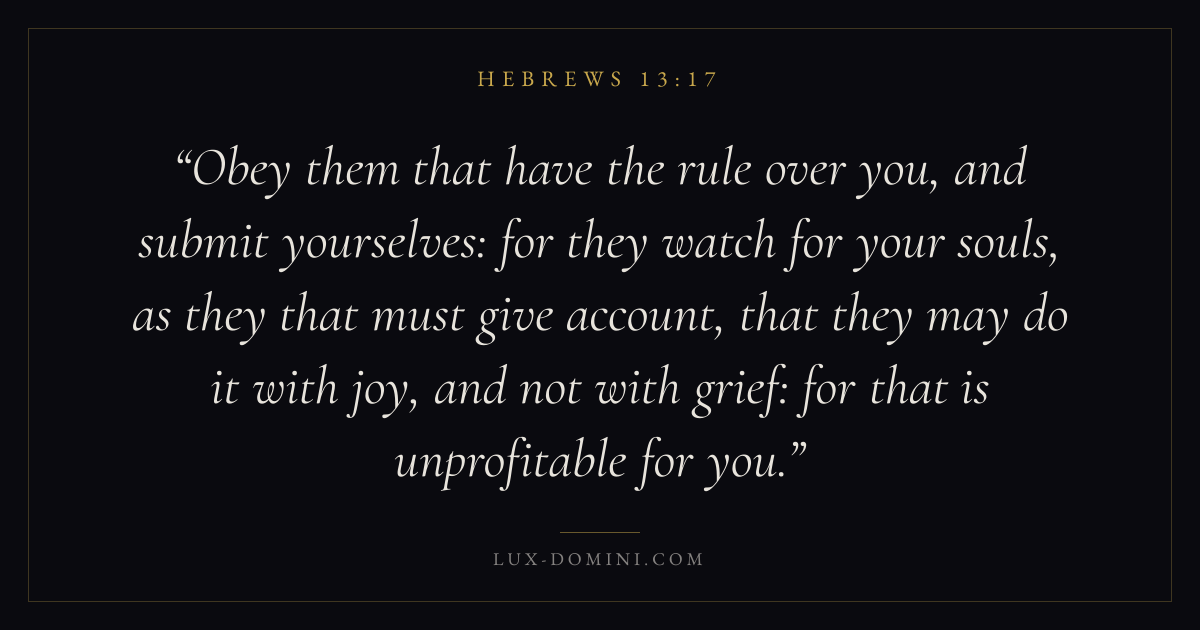 Obey them that have the rule over you, and submit yourselves: for they watch for your souls, as they that must give account, that they may do it with joy, and not with grief: for that is unprofitable for you.