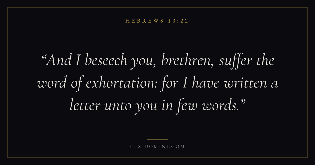 And I beseech you, brethren, suffer the word of exhortation: for I have written a letter unto you in few words.