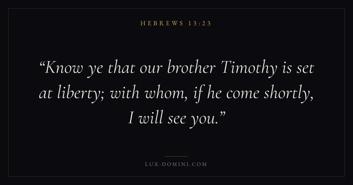 Know ye that our brother Timothy is set at liberty; with whom, if he come shortly, I will see you.