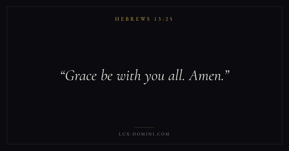 Keep this verse inside Hebrews 13:23-25 and alongside a few nearby related passages.