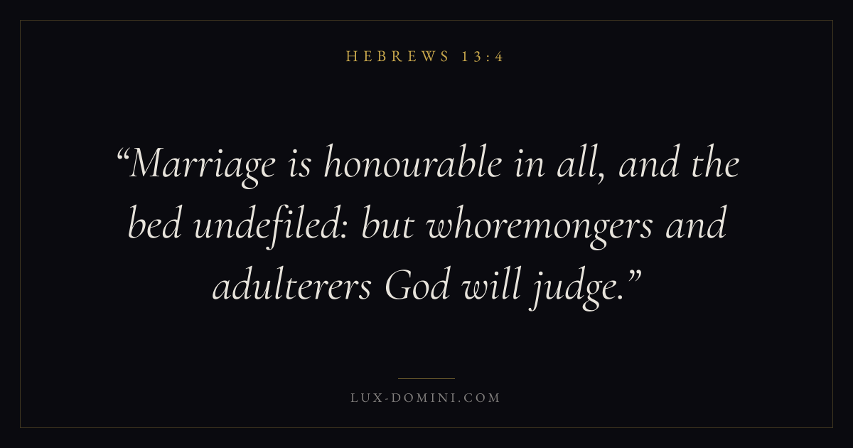 Marriage is honourable in all, and the bed undefiled: but whoremongers and adulterers God will judge.