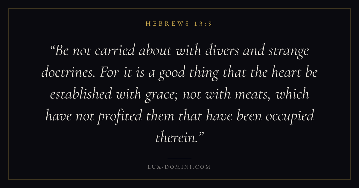 Be not carried about with divers and strange doctrines. For it is a good thing that the heart be established with grace; not with meats, which have not profited them that have been occupied therein.