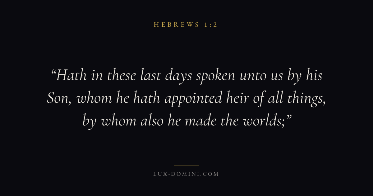 Hath in these last days spoken unto us by his Son, whom he hath appointed heir of all things, by whom also he made the worlds;