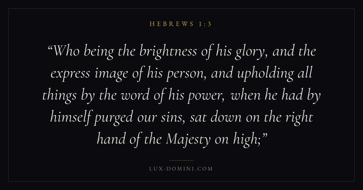 Who being the brightness of his glory, and the express image of his person, and upholding all things by the word of his power, when he had by himself purged our sins, sat down on the right hand of the Majesty on high;