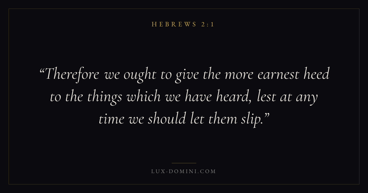Therefore we ought to give the more earnest heed to the things which we have heard, lest at any time we should let them slip.