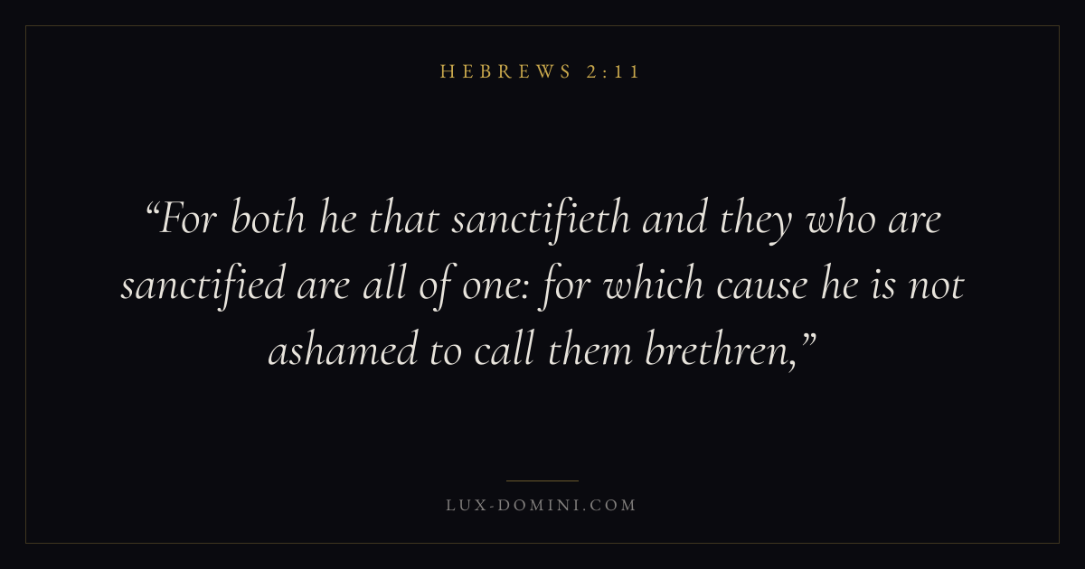 For both he that sanctifieth and they who are sanctified are all of one: for which cause he is not ashamed to call them brethren,