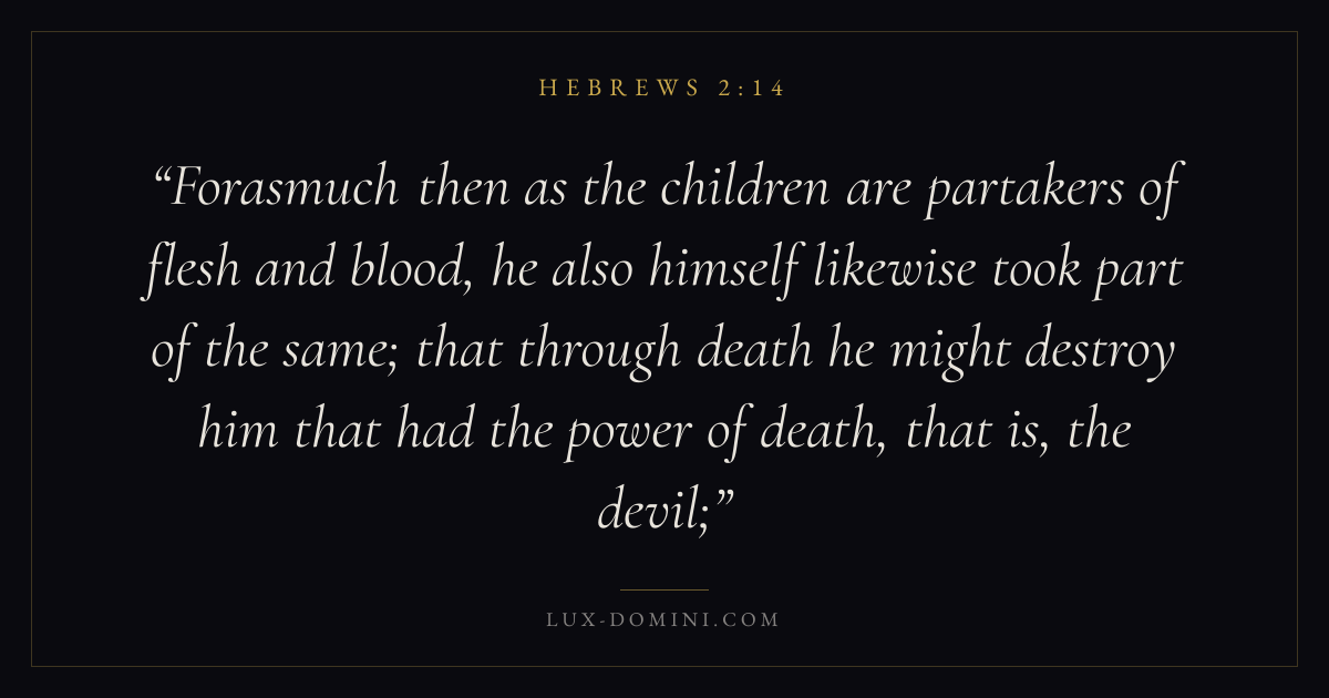 Forasmuch then as the children are partakers of flesh and blood, he also himself likewise took part of the same; that through death he might destroy him that had the power of death, that is, the devil;