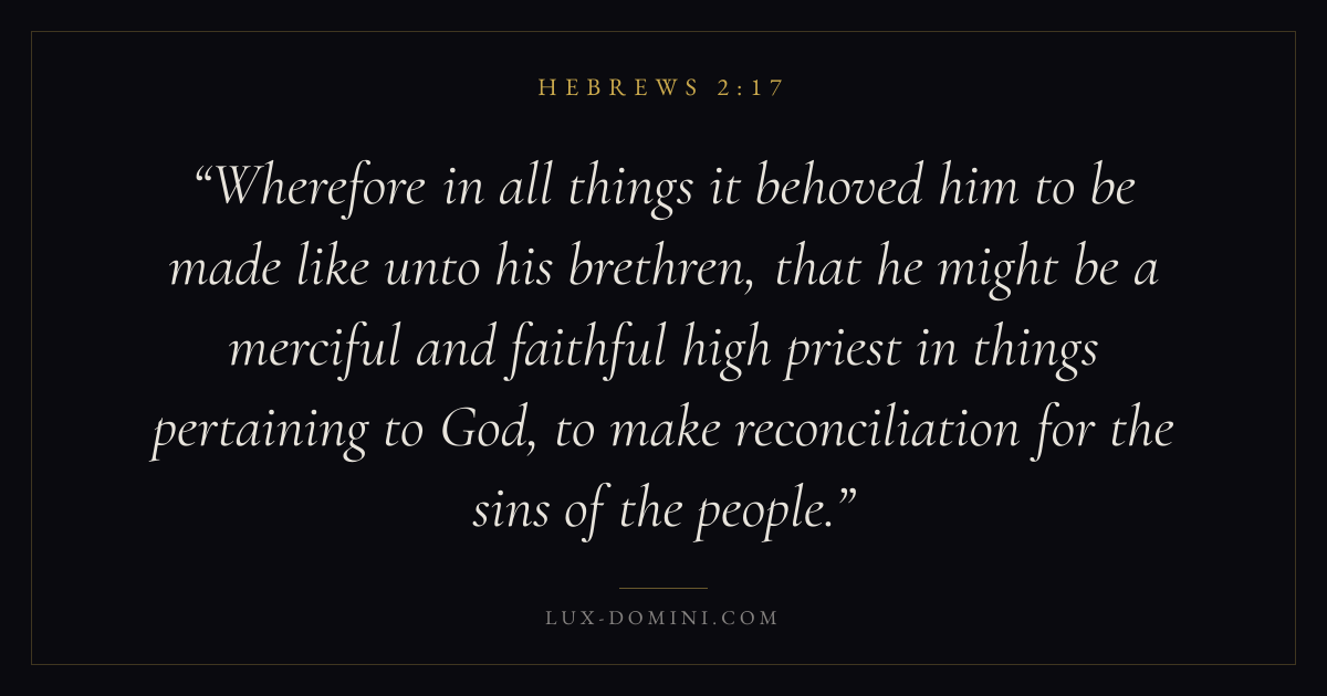 Wherefore in all things it behoved him to be made like unto his brethren, that he might be a merciful and faithful high priest in things pertaining to God, to make reconciliation for the sins of the people.