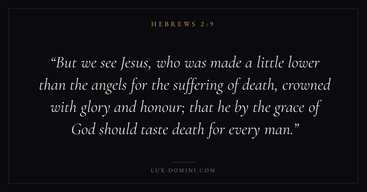 But we see Jesus, who was made a little lower than the angels for the suffering of death, crowned with glory and honour; that he by the grace of God should taste death for every man.