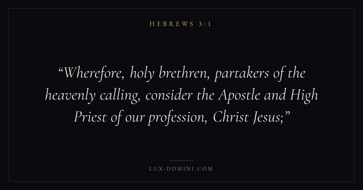 Wherefore, holy brethren, partakers of the heavenly calling, consider the Apostle and High Priest of our profession, Christ Jesus;