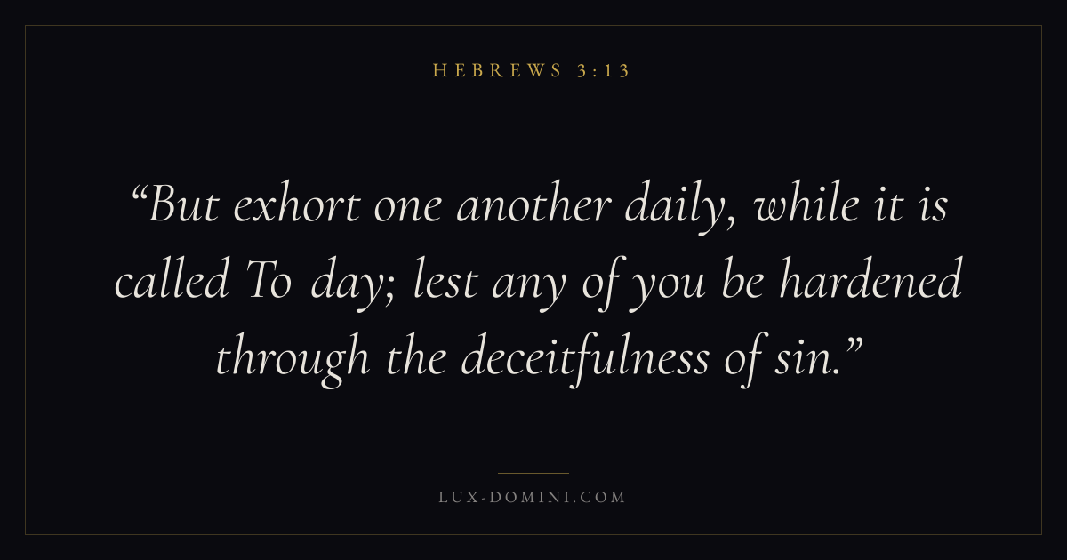 But exhort one another daily, while it is called To day; lest any of you be hardened through the deceitfulness of sin.