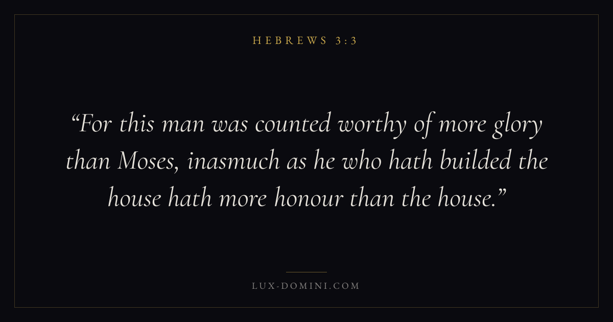 For this man was counted worthy of more glory than Moses, inasmuch as he who hath builded the house hath more honour than the house.