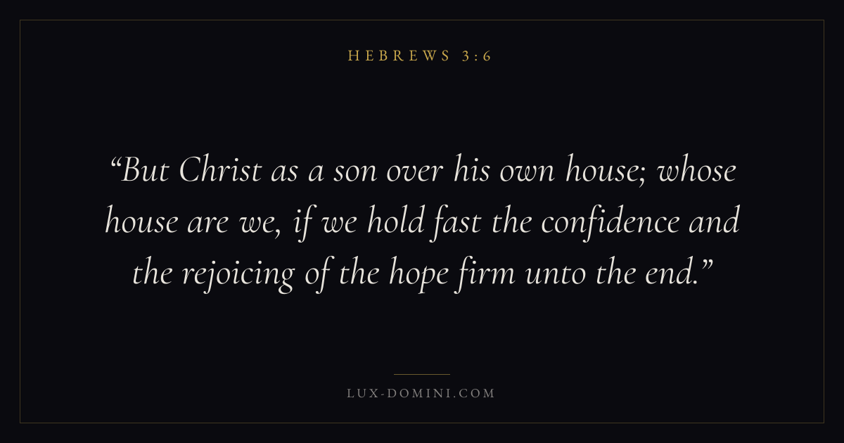 But Christ as a son over his own house; whose house are we, if we hold fast the confidence and the rejoicing of the hope firm unto the end.