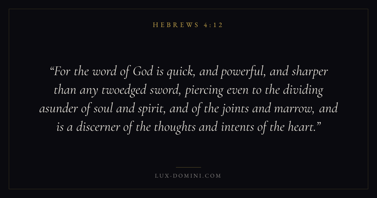 For the word of God is quick, and powerful, and sharper than any twoedged sword, piercing even to the dividing asunder of soul and spirit, and of the joints and marrow, and is a discerner of the thoughts and intents of the heart.