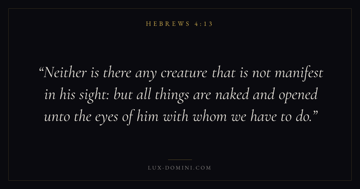 Neither is there any creature that is not manifest in his sight: but all things are naked and opened unto the eyes of him with whom we have to do.
