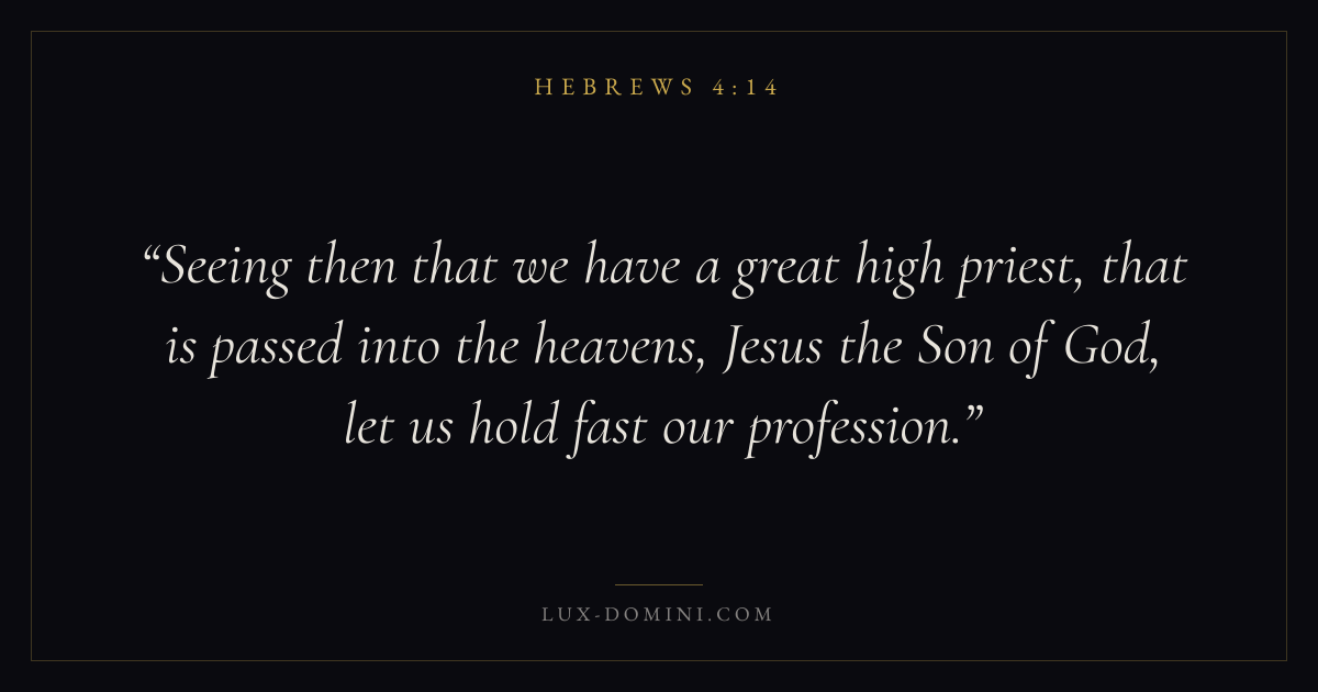 Seeing then that we have a great high priest, that is passed into the heavens, Jesus the Son of God, let us hold fast our profession.