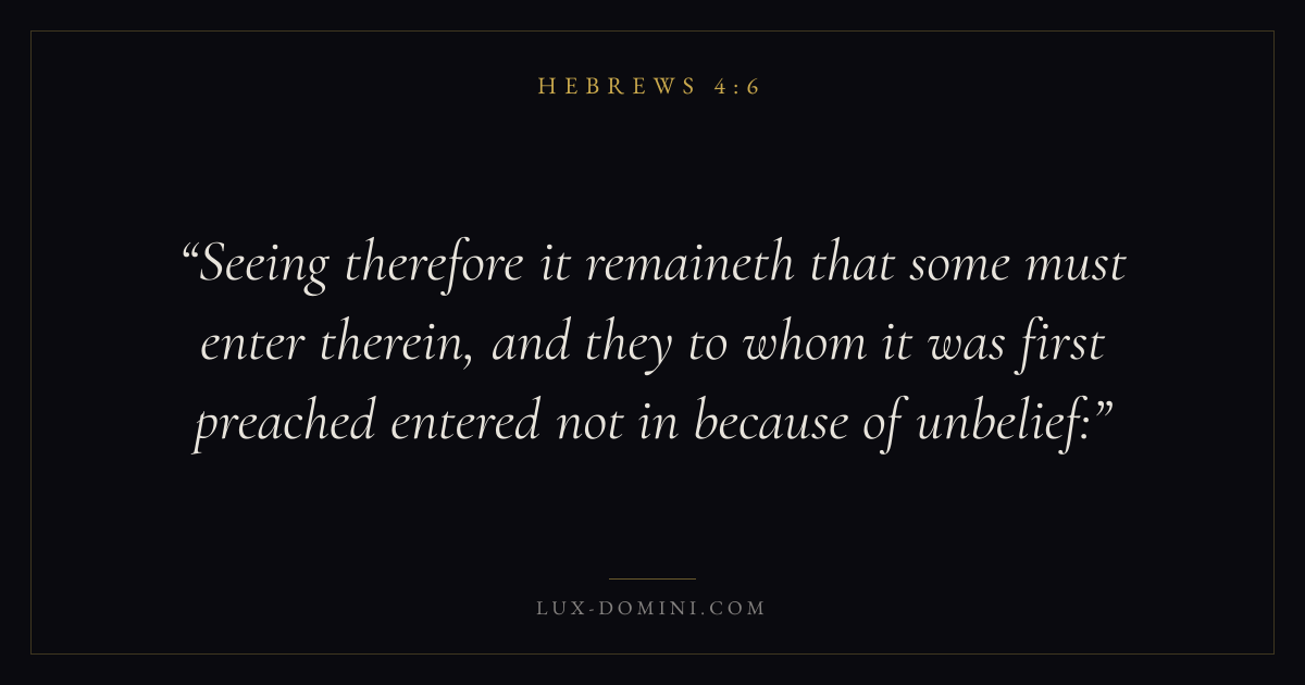 Seeing therefore it remaineth that some must enter therein, and they to whom it was first preached entered not in because of unbelief: