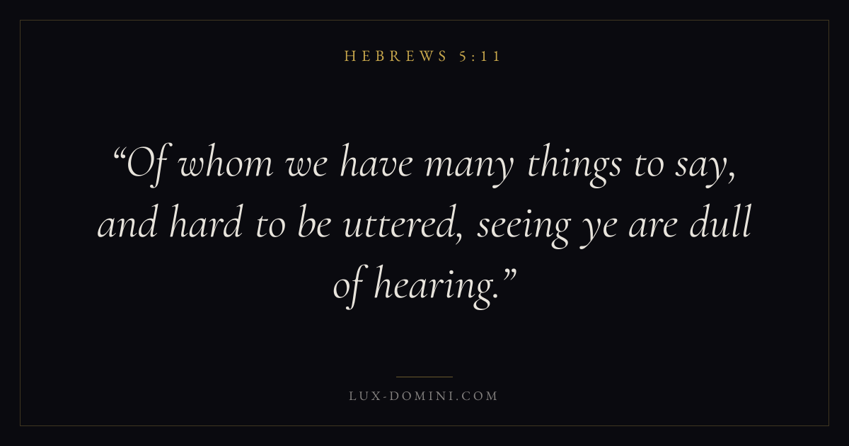 Of whom we have many things to say, and hard to be uttered, seeing ye are dull of hearing.
