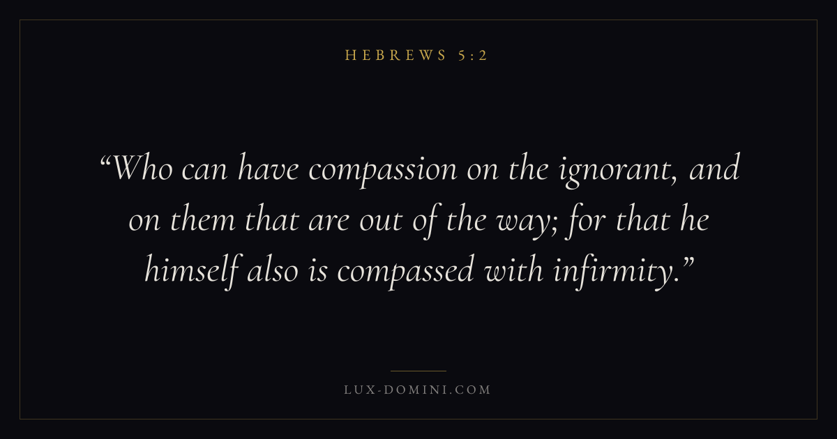 Who can have compassion on the ignorant, and on them that are out of the way; for that he himself also is compassed with infirmity.