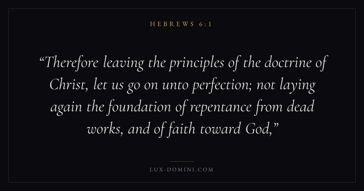 Therefore leaving the principles of the doctrine of Christ, let us go on unto perfection; not laying again the foundation of repentance from dead works, and of faith toward God,