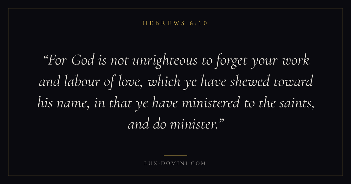 For God is not unrighteous to forget your work and labour of love, which ye have shewed toward his name, in that ye have ministered to the saints, and do minister.