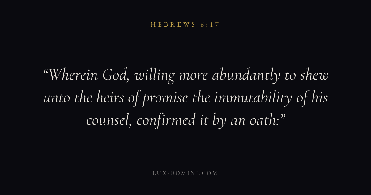 Wherein God, willing more abundantly to shew unto the heirs of promise the immutability of his counsel, confirmed it by an oath: