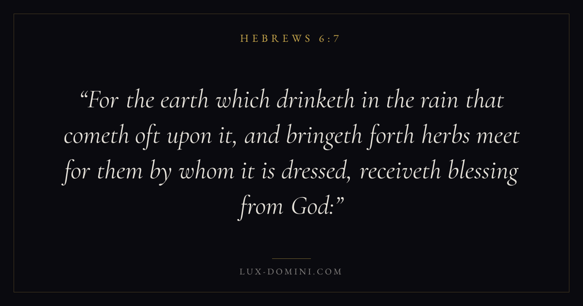 For the earth which drinketh in the rain that cometh oft upon it, and bringeth forth herbs meet for them by whom it is dressed, receiveth blessing from God: