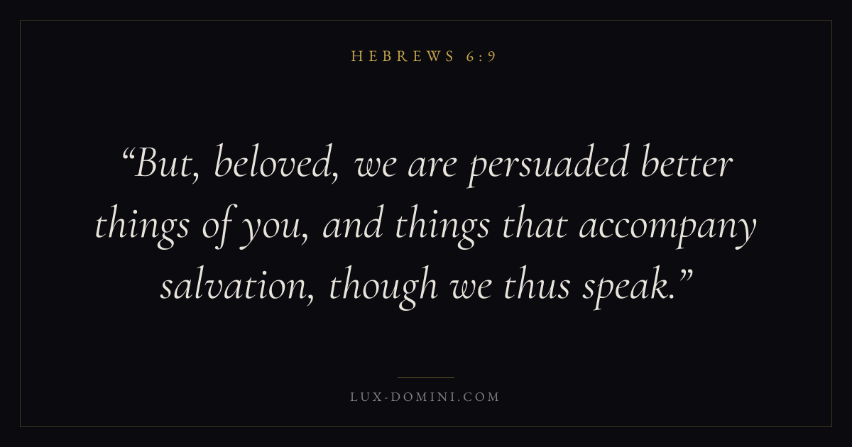 But, beloved, we are persuaded better things of you, and things that accompany salvation, though we thus speak.