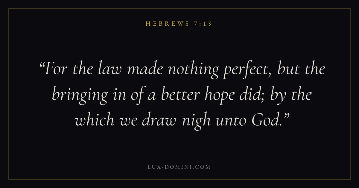 For the law made nothing perfect, but the bringing in of a better hope did; by the which we draw nigh unto God.