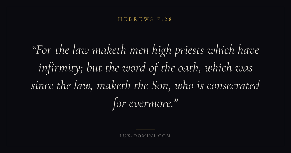 For the law maketh men high priests which have infirmity; but the word of the oath, which was since the law, maketh the Son, who is consecrated for evermore.