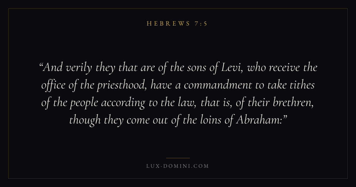 And verily they that are of the sons of Levi, who receive the office of the priesthood, have a commandment to take tithes of the people according to the law, that is, of their brethren, though they come out of the loins of Abraham: