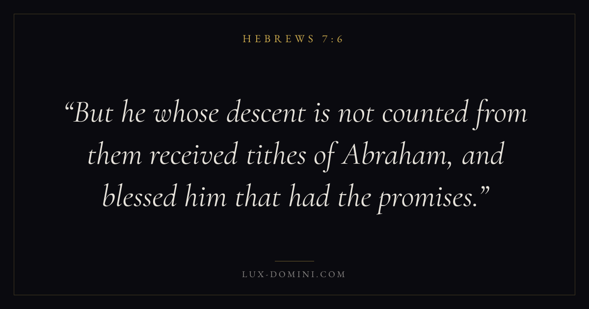 But he whose descent is not counted from them received tithes of Abraham, and blessed him that had the promises.