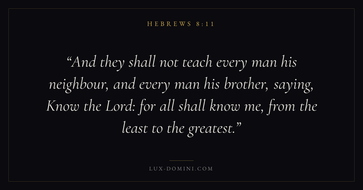 And they shall not teach every man his neighbour, and every man his brother, saying, Know the Lord: for all shall know me, from the least to the greatest.