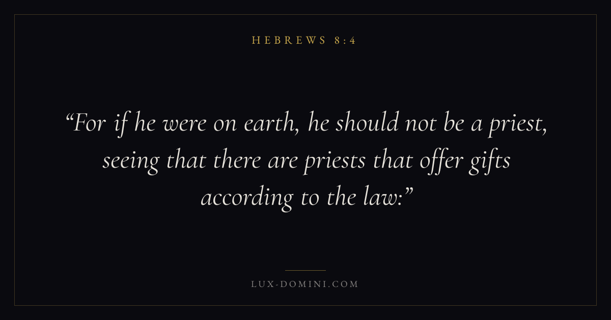 For if he were on earth, he should not be a priest, seeing that there are priests that offer gifts according to the law: