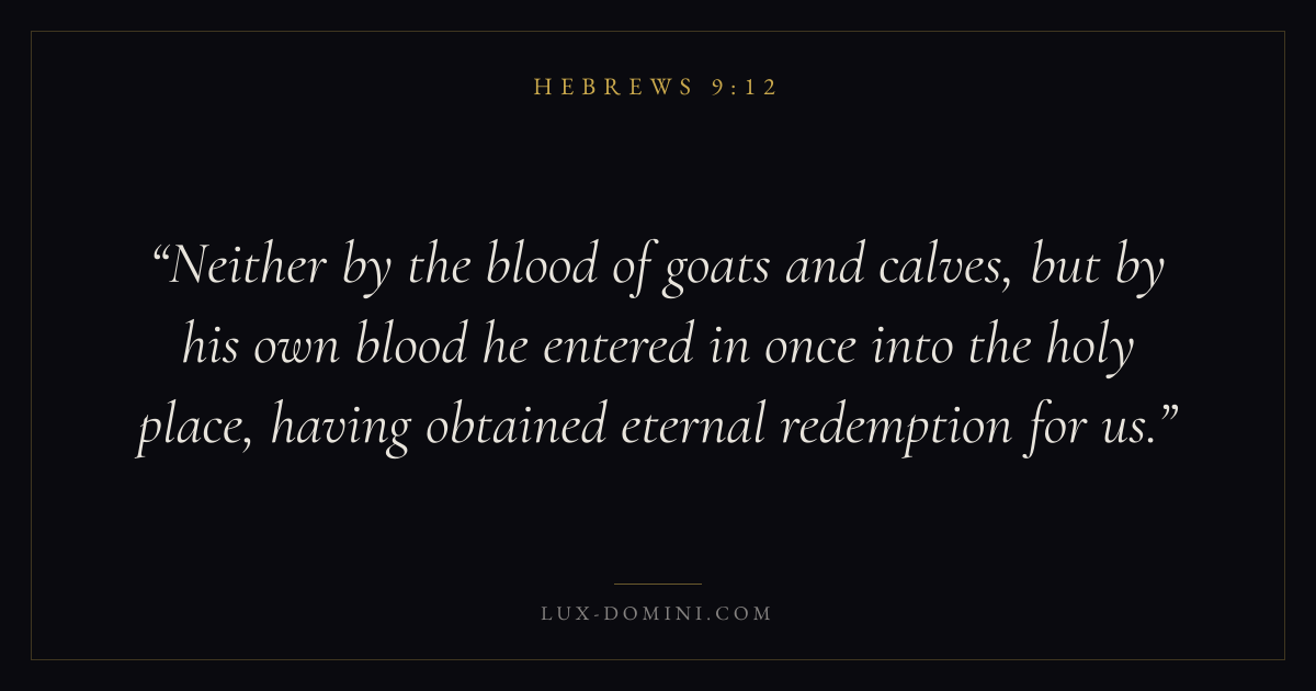 Neither by the blood of goats and calves, but by his own blood he entered in once into the holy place, having obtained eternal redemption for us.