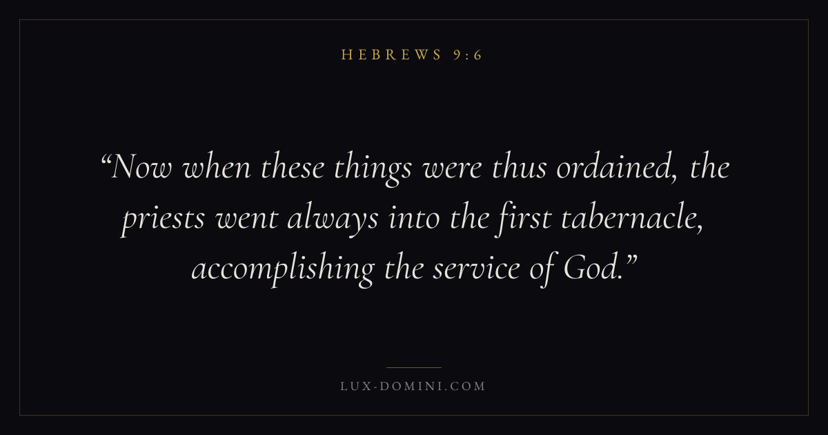 Now when these things were thus ordained, the priests went always into the first tabernacle, accomplishing the service of God.
