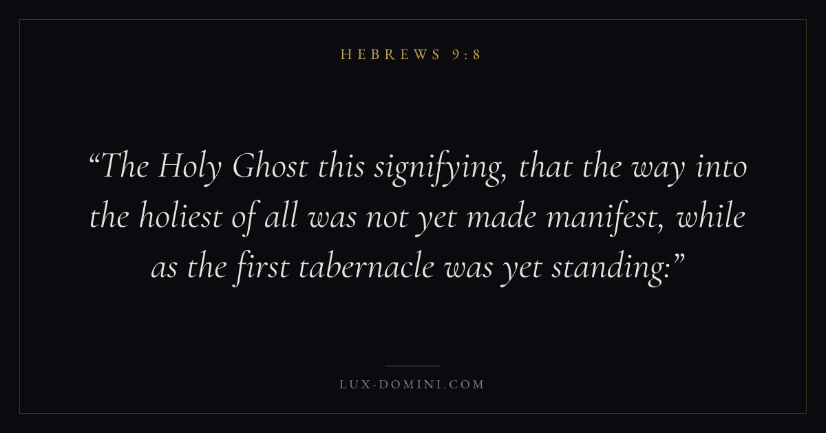 The Holy Ghost this signifying, that the way into the holiest of all was not yet made manifest, while as the first tabernacle was yet standing: