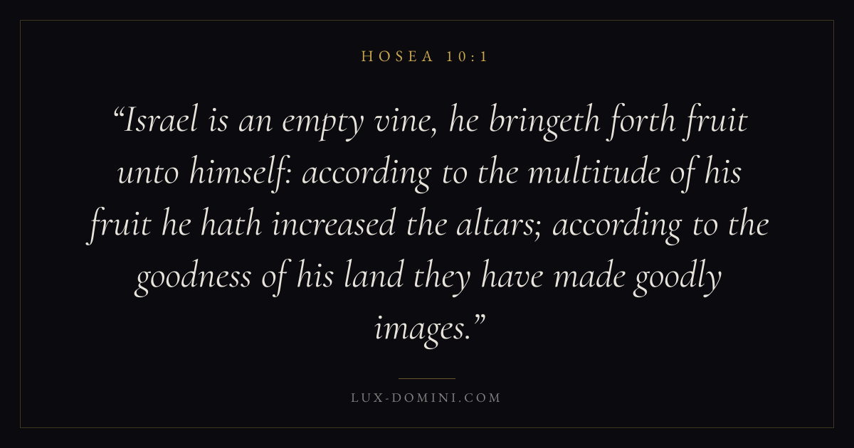 Israel is an empty vine, he bringeth forth fruit unto himself: according to the multitude of his fruit he hath increased the altars; according to the goodness of his land they have made goodly images.