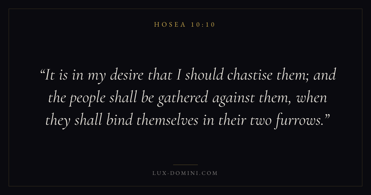 It is in my desire that I should chastise them; and the people shall be gathered against them, when they shall bind themselves in their two furrows.