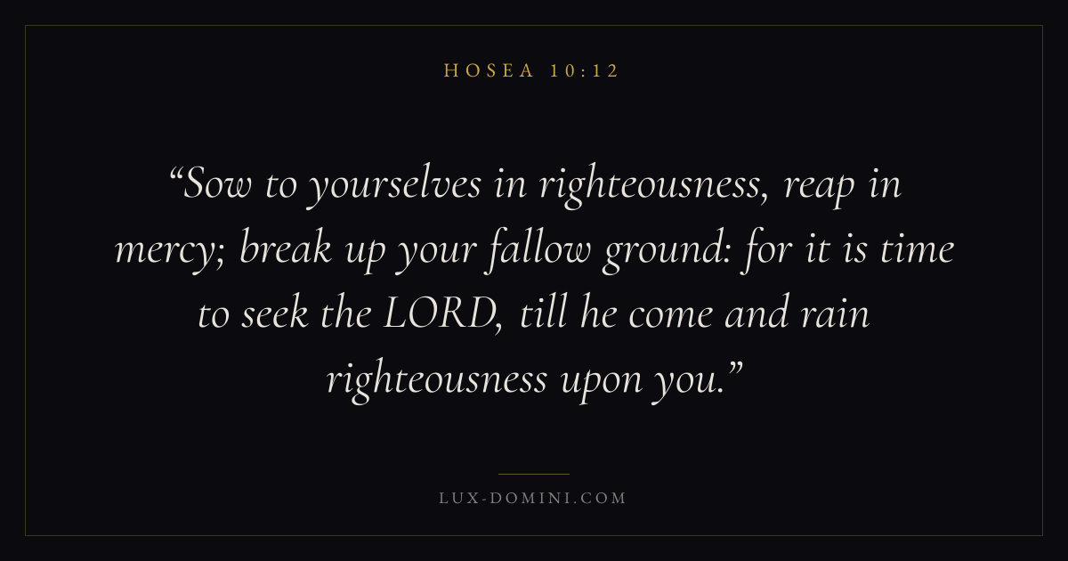 Sow to yourselves in righteousness, reap in mercy; break up your fallow ground: for it is time to seek the LORD, till he come and rain righteousness upon you.